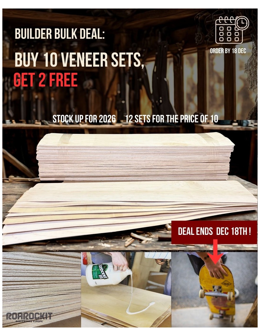 🌲 Bulk Builder Deal: Buy 10 Veneer Sets, Get 2 FREE!Level Up Your Production: Stock Up for 2026 For serious deck builders, quality begins with the wood. Our premium Hard Rock Maple veneer sets are ready for pressing. This limited-time holiday offer is designed to help small shops and dedicated craftsmen maximize their stock and minimize costs as they prepare for the new year. Don't buy individually—secure 12 sets for the price of 10.