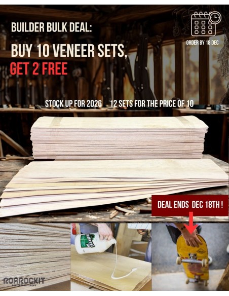 🌲 Offre Shaper : Achetez 10 Sets de Placage, Recevez 2 GRATUITS !Passez à la Vitesse Supérieure : Préparez votre Stock pour 2026 Pour les fabricants de skate, la qualité commence par le bois. Nos sets de placage en Érable de première qualité sont prêts à être pressés. Cette offre limitée pour les Fêtes est conçue pour aider les shapers et les artisans dédiés à maximiser leur stock et à minimiser leurs coûts en vue de la nouvelle année. N'achetez plus à l'unité—sécurisez 12 sets pour le prix de 10. Lorsque vous choisissez le Pack Shaper, vous recevez suffisamment de matériel pour presser 12 decks. - 10 sets de placages en 7 plis ⏱️ Date Limite pour l'Expédition Avant les FêtesAfin de garantir que votre commande soit expédiée et arrive à temps pour vous permettre de commencer vos projets de fin d'année, veuillez passer votre commande avant : Date Limite de Commande : Jeudi 18 Décembre.  Notre érable est cultivé dans le nord, où les hivers sont longs et froids ce qui signifient que le nœud croît lentement. Des anneaux de croissance plus serrés rendent le placage plus dense.